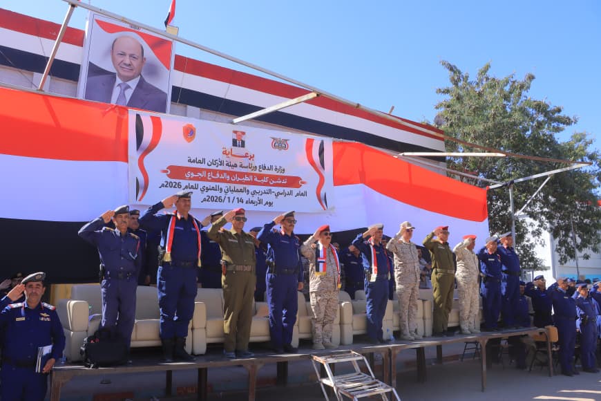 دشّنت كلية الطيران والدفاع الجوي بمحافظة مأرب، اليوم الأربعاء، العام التدريبي والقتالي والمعنوي 2026م لطلاب الدفعتين (34 و35)، وذلك وفقًا للتنظيم التوجيهي الصادر عن وزارة الدفاع ورئاسة هيئة الأركان العامة، وبما يتوافق مع خطة العام التدريبي والقتالي المعتمدة، بهدف رفع مستوى الكفاءة القتالية والمهنية وتأهيل كوادر عسكرية متخصصة.